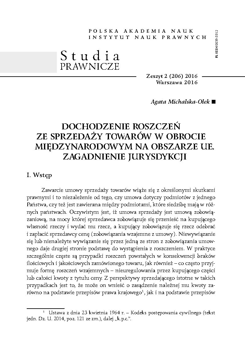 Dochodzenie roszczeń ze sprzedaży towarów w obrocie międzynarodowym na obszarze UE. Zagadnienie jurysdykcji: [Judicial redress for claims arising from sales of goods in international trade within the European Union. The issue of jurisdiction]. (2016). Studia Prawnicze The Legal Studies, 2 (206), 107-122. https://doi.org/10.37232/sp.2016.2.4