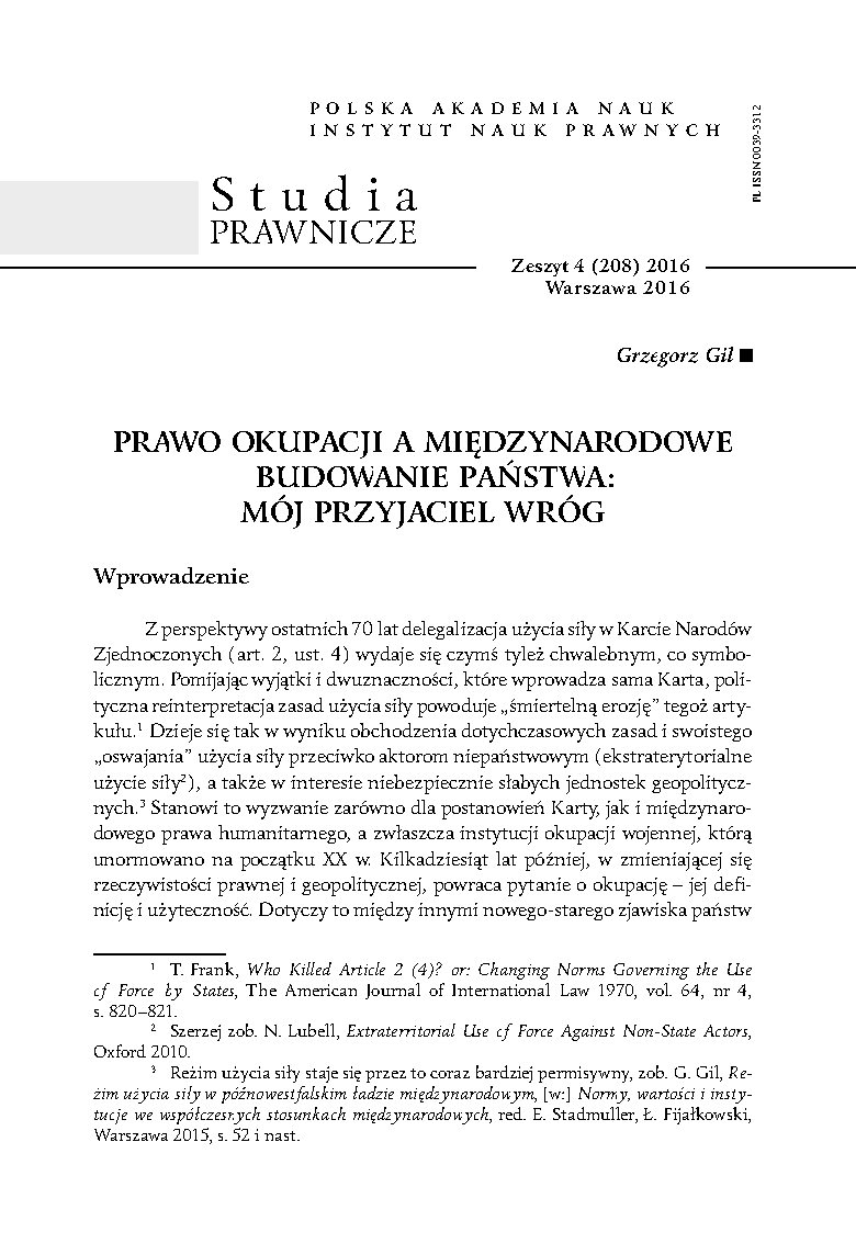 Prawo okupacji a międzynarodowe budowanie państwa: mój przyjaciel wróg: [Occupation law and international state-building: friend or foe]. (2016). Studia Prawnicze The Legal Studies, 4 (208), 7-38. https://doi.org/10.37232/sp.2016.4.1