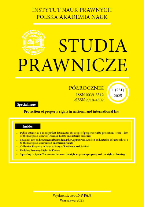 Niniejszy numer poświęcony jest zagadnieniom związanym z ochroną prawa własności. Tematyka przedstawiona jest nie tylko z perspektywy Europejskiej Konwencji Praw Człowieka, ale także w kontekście praw krajowych. Numer otwiera artykuł dotyczący tego, w jakim zakresie interes publiczny może stanowić uzasadnienie dla ograniczenia chronionych praw i wolności człowieka. W kolejnym artykule rozważono zagadnienie immisji w powiązaniu z ochroną własności oraz ochroną prawa do życia prywatnego i rodzinnego. W trzecim artykule, przestawiono analizę własności kolektywnej i jej znaczenie dla systemu społeczno-gospodarczego. W czwartym artykule podjęto temat reform własnościowych w Kosowie, z punktu widzenia tworzenia systemu prawa opartego na własności prywatnej, lecz nie wykluczającego występowania innych rodzajów własności. W ostatnim artykule omówiono wyzwania związane z ochroną własności prywatnej i prawem do mieszkania, w świetle rosnącego zjawiska dzikich lokatorów. Mamy nadzieję, że niniejszy numer „Studiów Prawniczych”, którego tematem przewodnim są różne ujęcia prawa własności, stanowić będzie źródło inspiracji dla dalszych badań naukowych w tym ważnym, społecznie i ekonomicznie, obszarze.